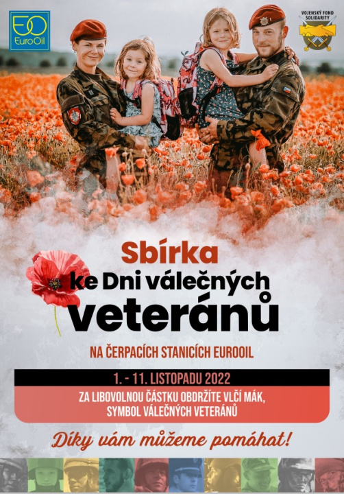 Ve dnech od 1. do 11. listopadu dostanete za dobrovolný příspěvek vložený do kasičky u pokladny na čerpacích stanicích EuroOil vlčí mák od Vojenského fondu solidarity, který již sedmým rokem pomáhá vojákům a jejich rodinám v tíživých životních situacích.